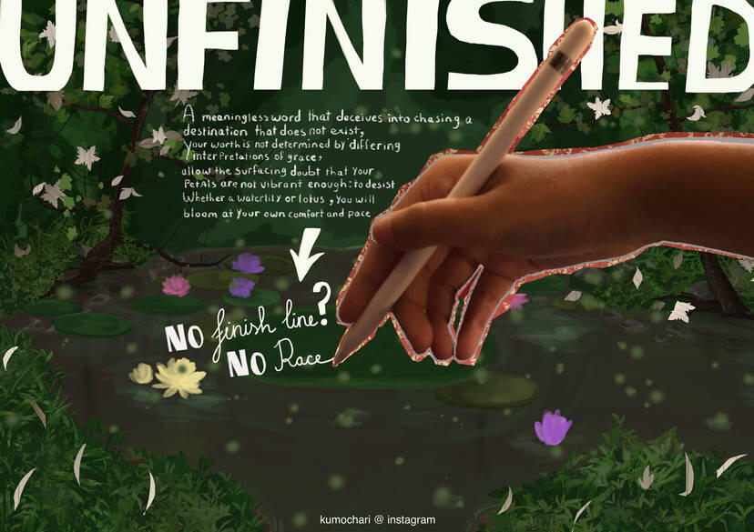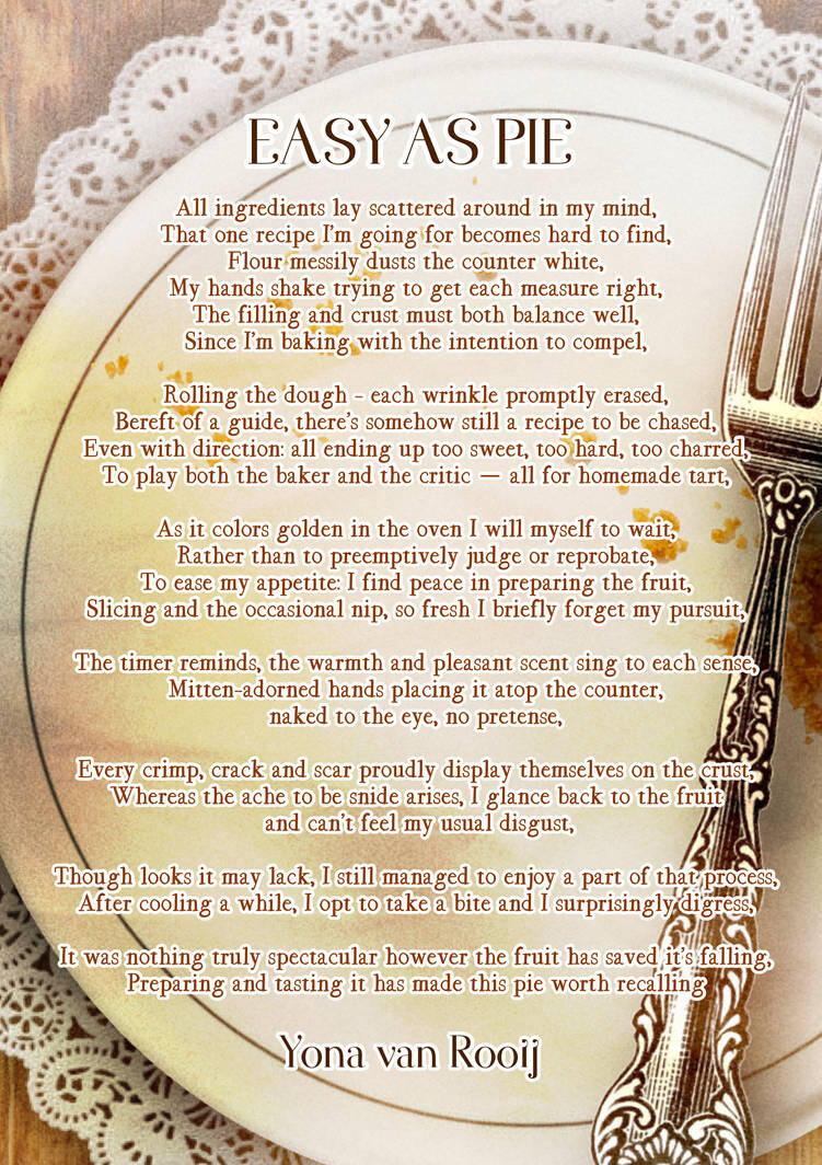 This poem was born from months of introspection where I learned that finding joy in the process makes an experience truly worthwhile to me. Especially as I have been very fixated on achieving specific outcomes. This work connects with my Dutch Design Week project, as I still often grapple with perfectionism. What I wrote is a reflection of the personal growth I experienced during this time, and my goal was to encapsulate that through both words and a collage-like visual style!