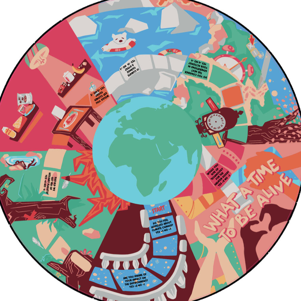 I was initially involved in the physical installation aspect of the space. In addition to this, I was later asked to design a foam board game to serve as a conversational tool. The game included questions about participants' awareness and opinions of their impact, sparking open discussion in a somewhat playful style.